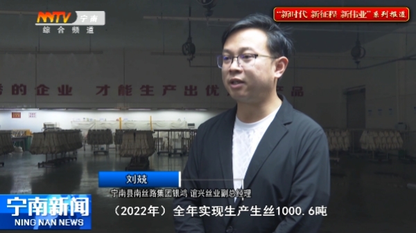 寧南縣南絲路集團(tuán)銀鴻 誼興絲業(yè)副總經(jīng)理 劉兢:(2022年)全年實(shí)現(xiàn)生產(chǎn)生絲1000.6噸,實(shí)現(xiàn)銷售收入5.2億元,出口創(chuàng)匯522萬美元,全年的生產(chǎn)經(jīng)營(yíng)相對(duì)平穩(wěn),今年隨著國內(nèi)國際經(jīng)濟(jì)的持續(xù)回暖,一季度我們實(shí)現(xiàn)生產(chǎn)任務(wù)239噸,產(chǎn)值1.18億元,產(chǎn)值增幅同比在30%以上。