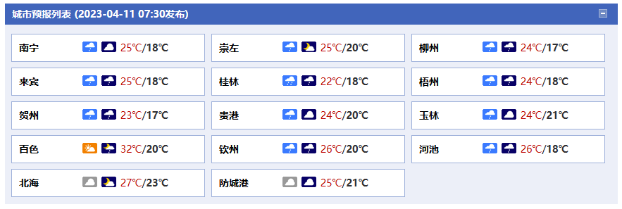 廣西氣象臺(tái)11日05時(shí)發(fā)布預(yù)報(bào):