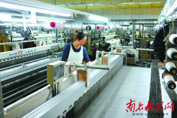 4月10日上午,記者在四川順成紡織品有限公司織造車間看到,紡織工人忙著操作機器設(shè)備進行生產(chǎn)。在工人操作下,一根根雪白的絲線變?yōu)橐黄テス鉂嵉慕z綢?!盀樘嵘髽I(yè)核心競爭力,公司進行了轉(zhuǎn)型升級,更新了老舊設(shè)備,引進新型生產(chǎn)技術(shù),讓‘織造’變‘智造’。”該公司相關(guān)負責人告訴記者,通過技改升級,公司實現(xiàn)了產(chǎn)品數(shù)量、質(zhì)量雙提升。