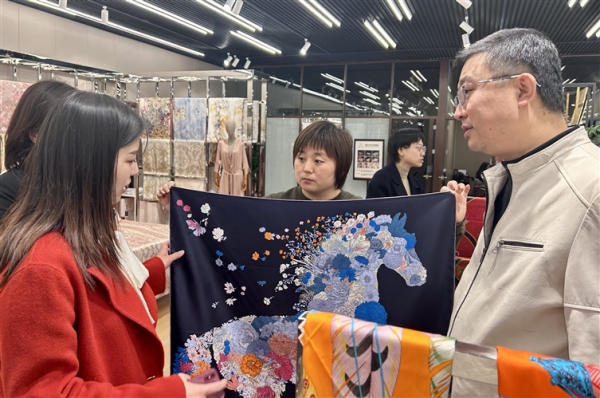 記者在展廳里看到,不少客人忙著挑選自己心儀的絲巾?!百|量這么好,價格也比國際知名品牌便宜不少,我們更要支持我們本地的品牌?!闭谶x購絲巾的市民王女士說。