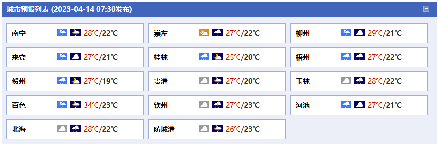 廣西氣象臺(tái)14日05時(shí)發(fā)布預(yù)報(bào):
