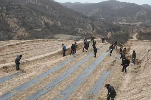 延川縣始終堅(jiān)持“綠水青山就是金山銀山”的發(fā)展理念,面對(duì)全縣地形梁峁起伏,山坡地多的特點(diǎn),積極建設(shè)山地“坡面蠶?!碑a(chǎn)業(yè),根據(jù)桑樹具有非常頑強(qiáng)的生命力和適應(yīng)性,生長(zhǎng)周期短,容易成林,長(zhǎng)成之后不懼旱澇、冰雹等極端天氣的影響,不僅可以綠化環(huán)境,還可以固沙防風(fēng),保持水土,涵養(yǎng)水源,凈化空氣,逐步建設(shè)兼顧生態(tài)效益與經(jīng)濟(jì)效益的生態(tài)型蠶桑生產(chǎn)基地,讓綠桑白蠶轉(zhuǎn)化成真金白銀,成為一項(xiàng)朝陽(yáng)產(chǎn)業(yè),彌補(bǔ)相當(dāng)一部分溝道村組的產(chǎn)業(yè)短板。同時(shí),圍繞精品建園、整體推進(jìn)的思路,嚴(yán)把新建園標(biāo)準(zhǔn),創(chuàng)新使用營(yíng)養(yǎng)杯裝土覆蓋,既節(jié)省了勞力,又起到了保溫作用。