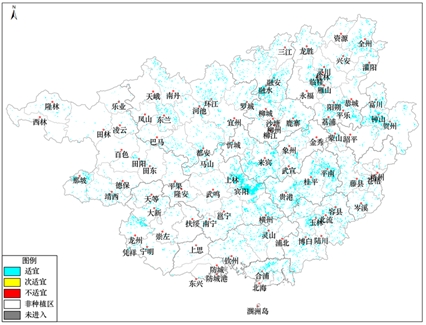 圖1 未來7天廣西早稻春播氣象適宜性分布圖