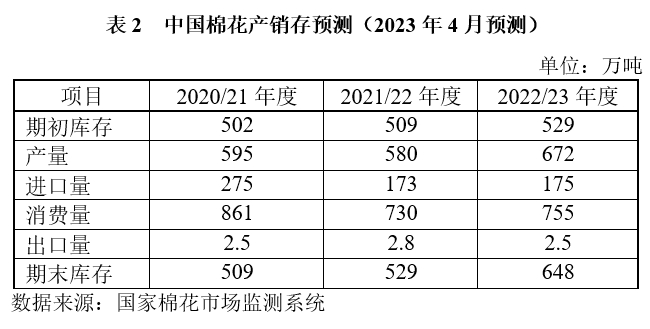 (三)2022年度中國棉花產(chǎn)銷存預測下調(diào)棉花進口量
