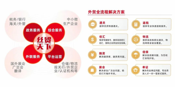 ▲“絲貿(mào)天下”外綜平臺向國內(nèi)外客商提供通關(guān)、物流、單證、信保、展會等供應(yīng)鏈服務(wù)