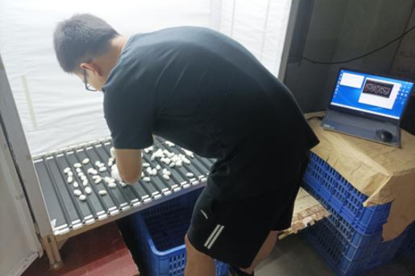 第三代智能選繭機(jī)進(jìn)行在線分選蠶繭