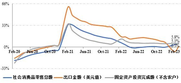 我國宏觀經(jīng)濟在疫情防控較快平穩(wěn)轉(zhuǎn)換、各項穩(wěn)經(jīng)濟政策舉措效果顯現(xiàn)支撐下步入復(fù)蘇上升期,生產(chǎn)需求企穩(wěn)回升,市場預(yù)期有所改善,經(jīng)濟運行實現(xiàn)良好開局。統(tǒng)計數(shù)據(jù)顯示,2023年一季度,我國國內(nèi)生產(chǎn)總值(GDP)同比增長4.5%,增速較2022全年回升1.5個百分點。一季度,我國規(guī)模以上企業(yè)工業(yè)增加值、社會消費品零售總額、固定資產(chǎn)投資完成額同比分別增長3%、5.8%和5.1%;制造業(yè)景氣保持?jǐn)U張態(tài)勢,前三個月制造業(yè)采購經(jīng)理指數(shù)(PMI)分別為50.1%、52.6%和51.9%,均高于上年同期水平。但是,受國際環(huán)境復(fù)雜多變、市場需求改善力度偏弱等因素影響,出口壓力加大、企業(yè)利潤萎縮態(tài)勢仍在延續(xù),一季度全國商品出口總額(美元計價)同比僅增長0.5%,1~2月規(guī)模以上企業(yè)利潤總額同比減少22.9%。
