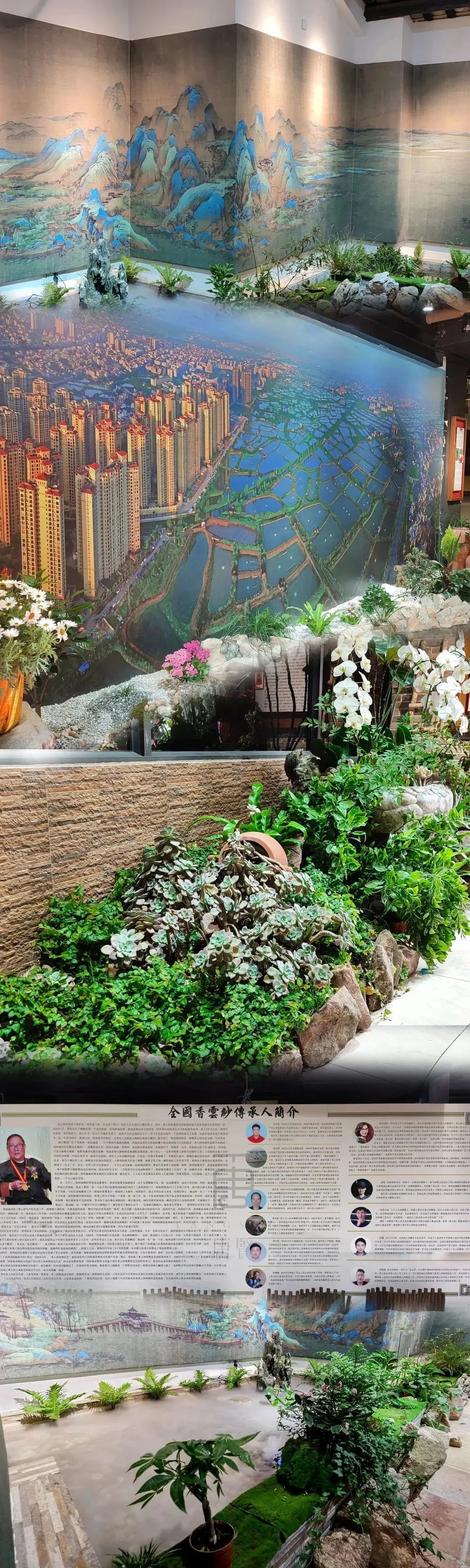 文化館前,首先映入眼簾的是,三十見方的植物導入墻,墻中各類花草生機盎然,正中間“唐賢香云紗”金字熠熠生光。