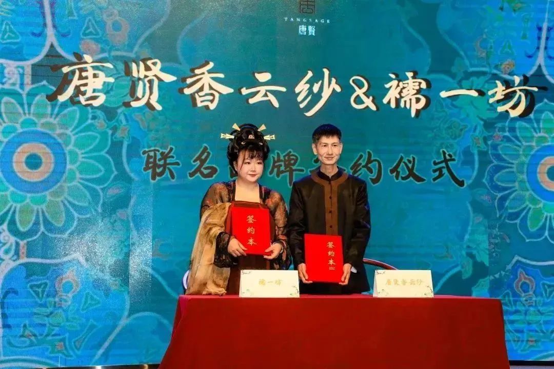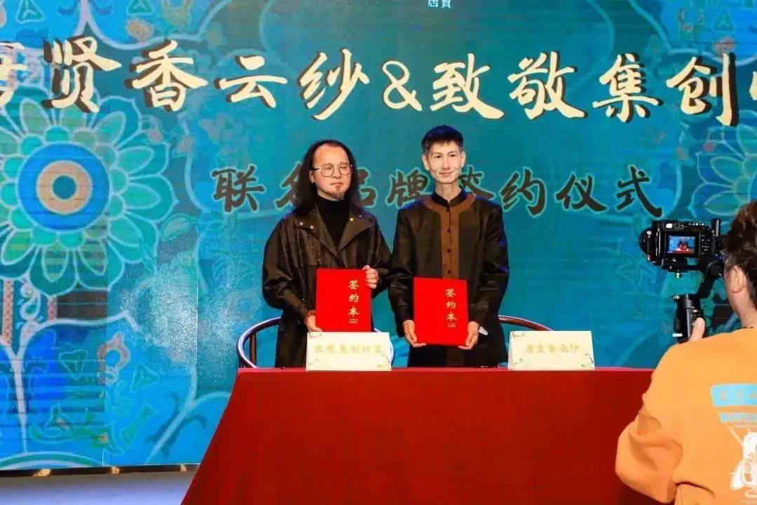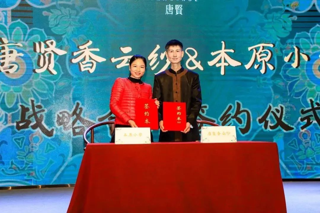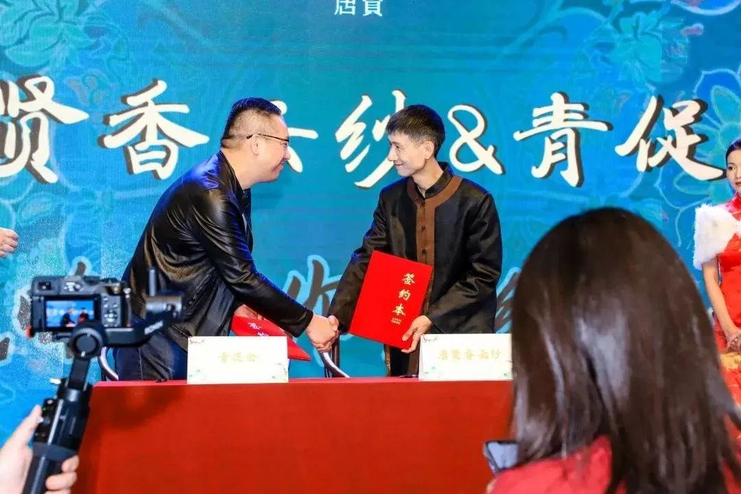 在現(xiàn)場,四個合作單位和三個聯(lián)名品牌與唐賢香云紗簽約,共同打造唐賢香云紗特有的“內修外聯(lián)”模式,為香云紗未來爭光添彩!
