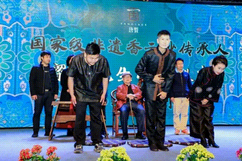 香云紗囯家級非遺傳承人梁珠先生收徒儀式在省市區(qū)六位領導見證下進行,三位傳承弟子歐陽永澤、彭娜、李鎮(zhèn)誠行中式拜師之禮,尊師重道,承諾全力投入香云紗傳承事業(yè),不畏艱難,努力拼博。