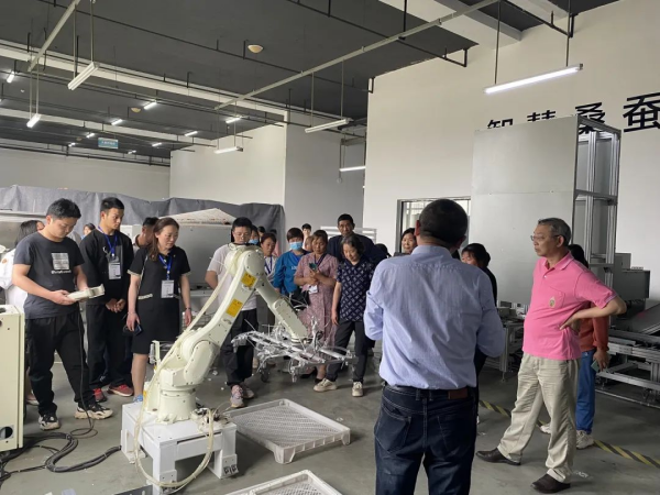 培訓(xùn)班上,全體學(xué)員參觀了公司先進(jìn)設(shè)備和配套設(shè)備,觀摩了新型智慧桑蠶養(yǎng)殖設(shè)備成套系統(tǒng)的運(yùn)行情況,了解了知天而作公司新型智慧桑蠶養(yǎng)殖設(shè)備配套的生產(chǎn)要素配置、效益和生產(chǎn)組織模式。