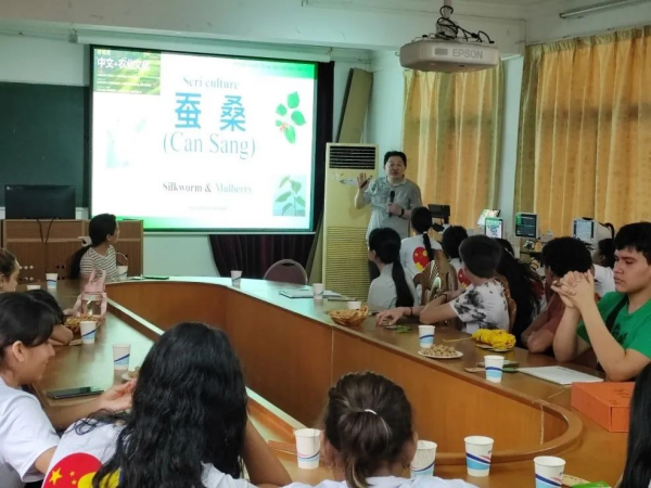 早在2022年9月,應(yīng)中外語(yǔ)言交流合作中心-拉丁美洲和加勒比地區(qū)中心的邀請(qǐng),劉吉平給“中文+農(nóng)業(yè)文化”研修班作“中國(guó)桑蠶文化”線上專題報(bào)告,受到數(shù)百名學(xué)員的好評(píng)。本次厄瓜多爾思邈維華國(guó)際學(xué)校組織“感知中國(guó)行”來(lái)華交流活動(dòng),便將華南農(nóng)業(yè)大學(xué)蠶培中心定為其中一站,希望能到這里了解中國(guó)的傳統(tǒng)蠶桑文化,推動(dòng)中國(guó)文化融入厄國(guó)當(dāng)?shù)厣鐣?huì)。