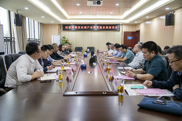 廣西蠶業(yè)技術推廣站站領導班子,自治區(qū)工信廳紡織醫(yī)藥處、廣西絲綢協(xié)會相關領導參加座談。