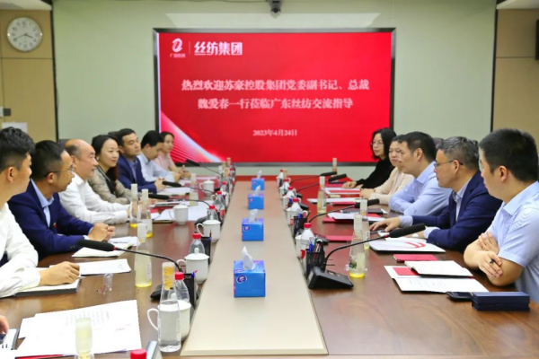 4月24日下午,江蘇省蘇豪控股集團總裁、黨委副書記魏愛春率隊到訪廣東絲紡集團并開展座談交流,廣新集團黨委委員、副總經(jīng)理陳南生熱情接待了魏愛春一行。廣新集團運營管理中心總經(jīng)理江瀟,絲紡集團黨委書記、董事長、總經(jīng)理李曉瑩及江蘇蘇豪國際集團黨委副書記、總經(jīng)理林華偉參加了座談。