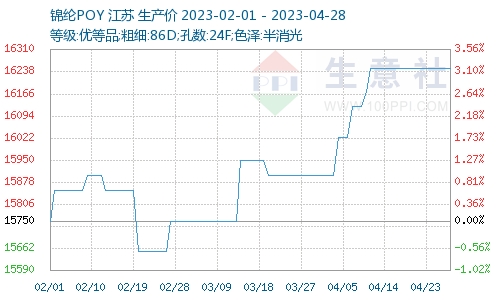 據(jù)生意社商品行情分析系統(tǒng)顯示,2023年4月,錦綸長絲價格小幅攀升。截止2023年4月28日,江蘇地區(qū)錦綸長絲DTY(優(yōu)等品;70D/24F)報價18520元/噸,較月初價格上漲420元/噸,月漲幅2.32%;錦綸POY(優(yōu)等品;86D/24F)報價16250元/噸,較月初價格上漲350元/噸,月漲幅2.20% 錦綸FDY(優(yōu)等品:40D/12F)價格報19200元/噸,較月初價格上漲375元/噸,月漲幅1.90%。