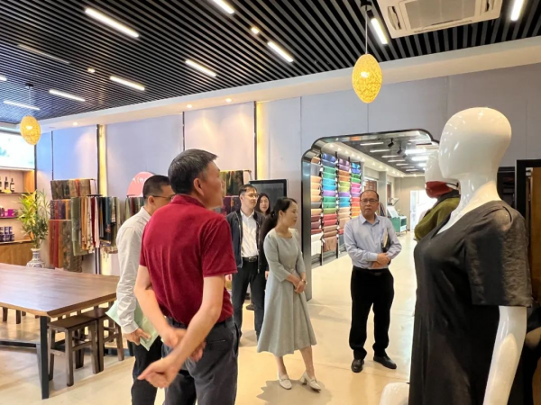 為推動落實順德與化州對口協(xié)作幫扶機制,共同謀劃兩地高質(zhì)量發(fā)展新篇章。4月28日,廣東省化州市副市長王曉玲帶領(lǐng)考察組到倫教蠶種場開展絲綢(香云紗)產(chǎn)業(yè)考察調(diào)研,合江鎮(zhèn)委副書記 鎮(zhèn)長梁峻銘、化州市投資促進中心副主任吳志強、順德區(qū)經(jīng)濟促進局總經(jīng)濟師馮家擎、倫教蠶種場執(zhí)行董事兼總經(jīng)理李琦及倫教蠶種場副總經(jīng)理 倫教香云紗協(xié)會秘書長湯錚陪同調(diào)研。