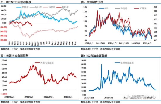 雖然宏觀利空讓經(jīng)濟衰退擔(dān)憂升溫,這進(jìn)一步打擊了市場信心,下游成品油裂解差持續(xù)走弱也印證了歐美需求的疲弱。但OPEC+進(jìn)入5月份之后的366萬桶/日減產(chǎn)行動還是讓原油市場會維持供應(yīng)收緊的基本局面,這也意味著原油市場2023年內(nèi)很難存在明顯的過剩壓力,原油供需層面自身下行驅(qū)動有限,因此一旦宏觀利空擔(dān)憂消退市場情緒回暖,油價還是有很大概率會隨著資金的回補走出反彈修復(fù)行情。