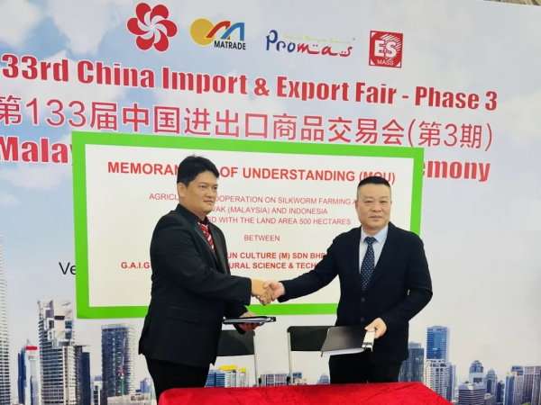 5月1日,第133屆中國進出口商品交易會在廣州舉行,廣西農(nóng)投時宜農(nóng)業(yè)科技有限公司與馬來西亞SERI KOKUN CULTURE公司在廣交會上簽署蠶桑產(chǎn)業(yè)合作備忘錄,投資金額達500萬美元。