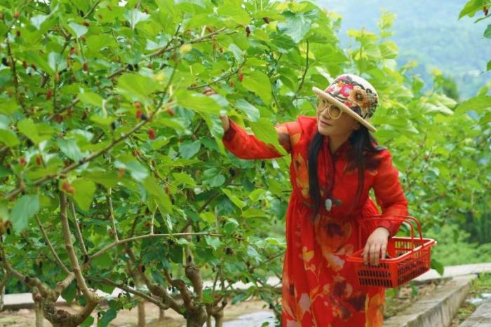 “酸甜可口的桑葚在市場上備受青睞,不愁銷路,開園采摘只是銷售桑葚的方式之一?!标愱派冀榻B,桑葚成熟前就已有不少果商來電訂購,這幾天正組織基地工作人員集中采摘,打包運送給客戶。另外,她還通過果園的烘干房將桑葚加工成桑葚干,將桑葉采摘、曬干、烘焙后制作成桑葉茶,銷往全國各地。