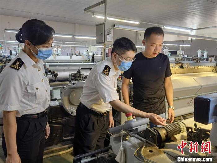 圖為河池海關關員到關區(qū)繭絲綢生產企業(yè)了解生產流程