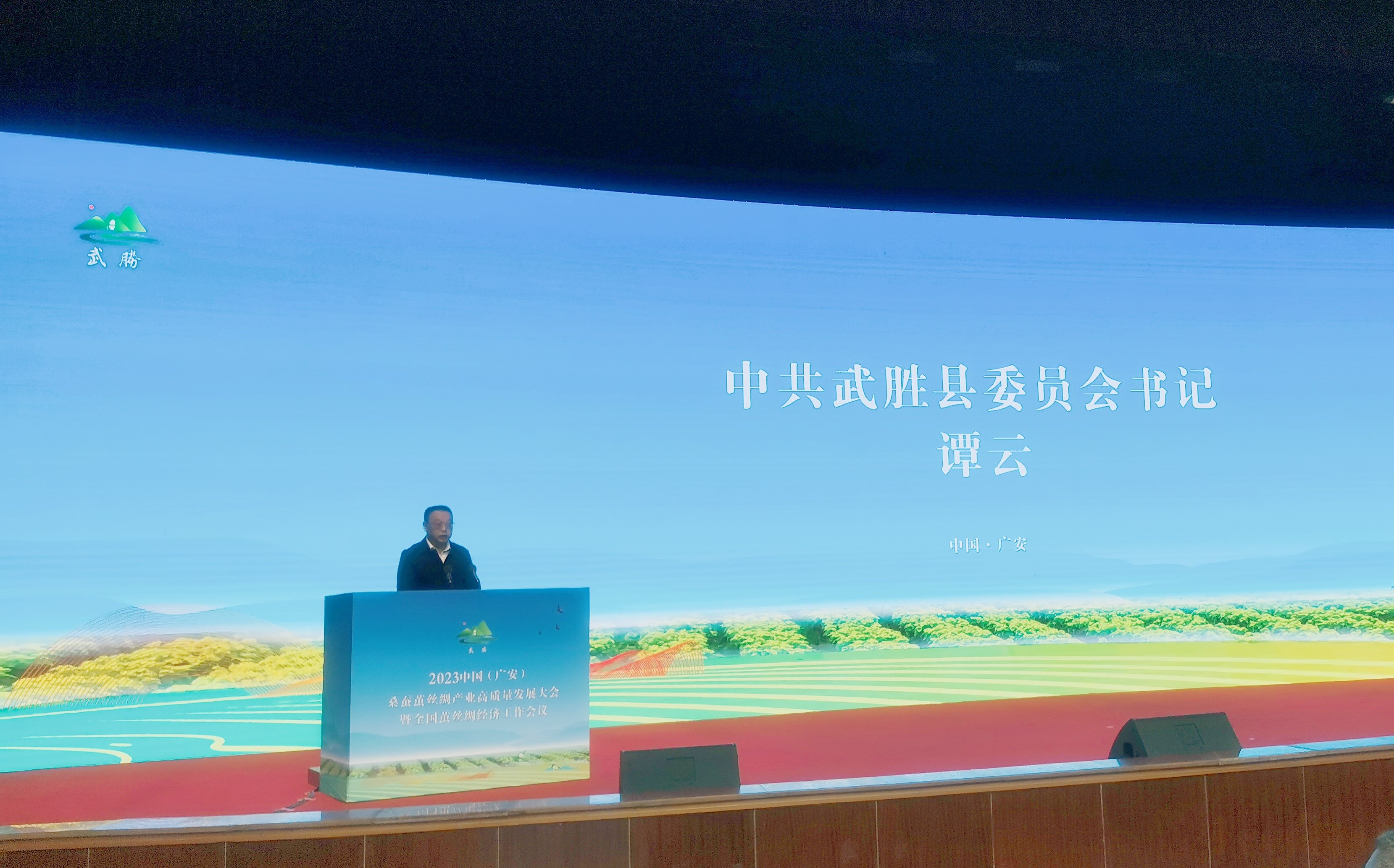 武勝縣委書記譚云對(duì)2022年的蠶桑工作成果做了介紹,并分享了縣政府在推動(dòng)全縣桑、繭、絲產(chǎn)業(yè)生產(chǎn)循環(huán)發(fā)展方面的努力和經(jīng)驗(yàn):
