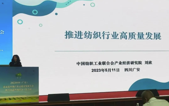 中國紡織工業(yè)聯合會產業(yè)經濟研究院副院長劉欣在2023中國(廣安)桑蠶繭絲綢產業(yè)高質量發(fā)展大會暨全國繭絲綢經濟工作會議作《推動紡織行業(yè)高質量發(fā)展》報告。