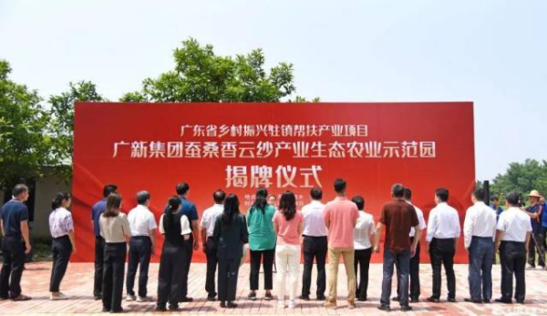 5月18日上午,由廣東省政府參事室、廣新控股集團(tuán)幫扶的廣東省鄉(xiāng)村振興駐鎮(zhèn)幫扶產(chǎn)業(yè)項(xiàng)目、位于陽(yáng)春市合水鎮(zhèn)茶河村的廣新集團(tuán)蠶桑香云紗產(chǎn)業(yè)生態(tài)農(nóng)業(yè)示范園舉行了揭牌儀式。省政府參事室黨組成員黎澤林,廣新控股集團(tuán)黨委書記、董事長(zhǎng)白濤,陽(yáng)春市政協(xié)主席翁文星,陽(yáng)春市委常委、宣傳部部長(zhǎng)張英華參加活動(dòng)并共同為蠶桑香云紗產(chǎn)業(yè)示范園項(xiàng)目揭牌。