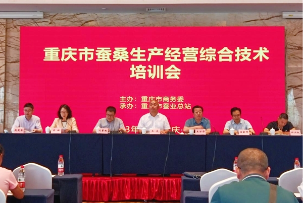 為持續(xù)提升我市蠶桑生產(chǎn)、管理、經(jīng)營(yíng)技術(shù),2023年5月16—17日,由重慶市商務(wù)委員會(huì)主辦,重慶市蠶業(yè)總站承辦的重慶市蠶桑生產(chǎn)經(jīng)營(yíng)綜合技術(shù)培訓(xùn)會(huì)在合川舉辦。會(huì)議特邀西南大學(xué)魯成教授、潘敏慧教授、趙愛(ài)春教授、石聲萍教授,祥飛智能科技周永忠董事長(zhǎng)授課。市商務(wù)委王慶調(diào)研員、合川區(qū)農(nóng)委劉碧桃副主任到會(huì)講話。市蠶業(yè)總站王萬(wàn)華站長(zhǎng),鄭琳、李洪元、肖志洪副站長(zhǎng),市繭絲綢行業(yè)協(xié)會(huì)鐘興權(quán)秘書(shū)長(zhǎng)出席會(huì)議。有關(guān)區(qū)縣蠶桑技術(shù)推廣人員、蠶業(yè)生產(chǎn)經(jīng)營(yíng)主體代表共100余人參加會(huì)議。培訓(xùn)會(huì)由市蠶業(yè)總站鄭琳副站長(zhǎng)、余華獻(xiàn)處長(zhǎng)主持。