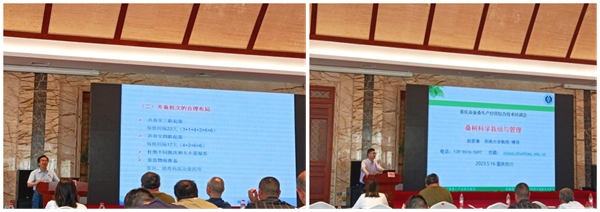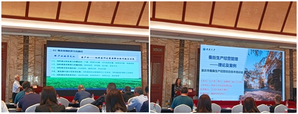 在專(zhuān)題講座環(huán)節(jié),西南大學(xué)教授潘敏慧、趙愛(ài)春、魯成、石聲萍,祥飛智能科技董事長(zhǎng)周永忠分別就《高效養(yǎng)蠶適應(yīng)技術(shù)》、《桑樹(shù)科學(xué)栽培與管理》、《蠶業(yè)多元化發(fā)展》、《蠶絲生產(chǎn)經(jīng)營(yíng)管理》、《工業(yè)化養(yǎng)蠶及蠶桑產(chǎn)業(yè)發(fā)展趨勢(shì)》進(jìn)行講授,內(nèi)容涉及家蠶病蟲(chóng)害、飼養(yǎng)技術(shù)、桑園管理、蠶桑多元化發(fā)展、蠶業(yè)經(jīng)營(yíng)管理、智能化養(yǎng)蠶等具體技術(shù)及各地實(shí)際應(yīng)用等各個(gè)方面。