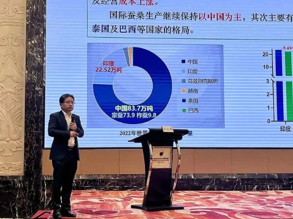 作為本次會(huì)議的舉辦地,湖州是世界絲綢文化的發(fā)祥地之一,是我國重要的優(yōu)質(zhì)蠶繭生產(chǎn)基地、高品位生絲和優(yōu)質(zhì)絲綢出口基地,先后被評(píng)為“中國絲綢之鄉(xiāng)”和“中國綢都”,初步形成了蠶桑產(chǎn)業(yè)一二三產(chǎn)融合發(fā)展的新模式,實(shí)現(xiàn)了傳統(tǒng)生產(chǎn)方式向現(xiàn)代蠶業(yè)的轉(zhuǎn)變。