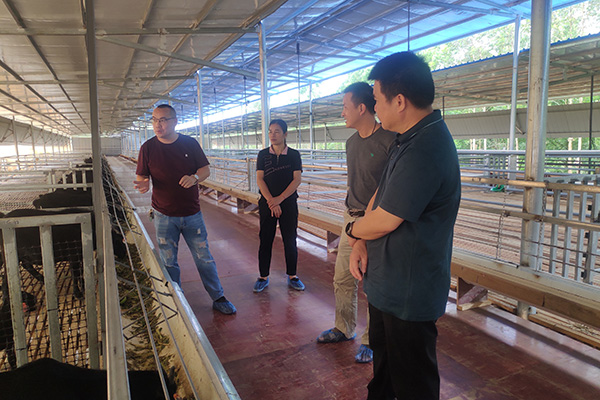 創(chuàng)新團(tuán)隊(duì)一行聽取了“桑樹多元化利用示范基地項(xiàng)目”建設(shè)單位主要負(fù)責(zé)人對(duì)項(xiàng)目情況的相關(guān)介紹,并實(shí)地參觀項(xiàng)目建設(shè)現(xiàn)場(chǎng)及馬山黑山羊母羊養(yǎng)殖繁育情況,從飼料桑園規(guī)劃、飼料桑品種選擇與栽培技術(shù)、桑飼料加工廠與生產(chǎn)線完善、桑飼料加工技術(shù)等方面提出了技術(shù)指導(dǎo)。創(chuàng)新團(tuán)隊(duì)建議企業(yè)加強(qiáng)與相關(guān)技術(shù)團(tuán)隊(duì)合作,在蠶羊兼養(yǎng)、桑葉資源高效利用等方面獲得技術(shù)支撐與保障,為拓展桑樹資源多元化利用途徑、促進(jìn)蠶桑產(chǎn)業(yè)鏈延長(zhǎng)做好示范帶動(dòng)作用。