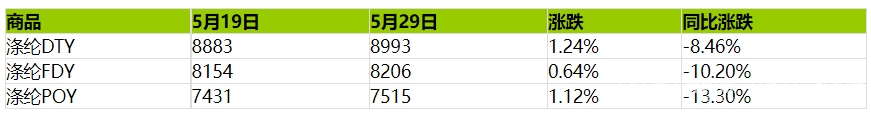 近期滌綸長(zhǎng)絲市場(chǎng)均價(jià)漲跌情況 單位:元/噸