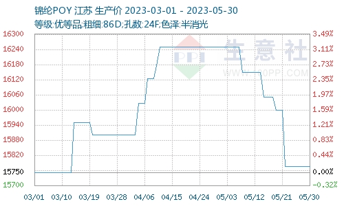 據(jù)生意社商品行情分析系統(tǒng)顯示,2023年5月,錦綸長絲價格逐步走低。截止2023年5月30日,江蘇地區(qū)錦綸長絲DTY(優(yōu)等品;70D/24F)報價18060元/噸,較月初價格下跌460元/噸,月跌幅2.48%;錦綸POY(優(yōu)等品;86D/24F)報價15775元/噸,較月初價格下跌475元/噸,月跌幅2.92%;錦綸FDY(優(yōu)等品:40D/12F)價格報18650元/噸,較月初價格下跌550元/噸,月跌幅2.86%。