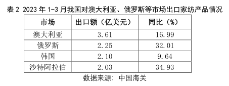 圖1 2023年1-3月我國(guó)主要家紡產(chǎn)品出口額及出口額同比