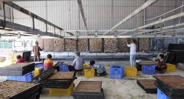 當(dāng)前正值初夏時節(jié),在禾亭鎮(zhèn)高寨村桑梓桑蠶養(yǎng)殖專業(yè)合作社基地里,一排排方格蔟整齊排列,上面結(jié)滿了一顆顆形狀圓潤、潔白如霜的繭子,養(yǎng)蠶大戶樊波正在指導(dǎo)工人收繭、挑選,現(xiàn)場一派繁忙的景象?!澳壳拔覀冞@個合作社已經(jīng)種植了120畝桑樹,約30萬株。去年種植,今年四月份已經(jīng)賣出了第一批蠶繭,目前第二批正在摘繭中。照我們目前的養(yǎng)殖模式,每年可養(yǎng)10批,預(yù)計年產(chǎn)值能夠達到一百萬元以上?!狈ń榻B道。