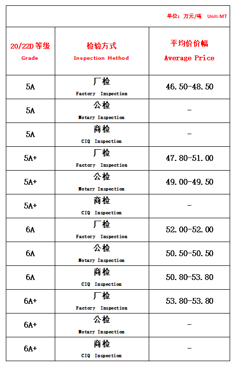 【本周高品位生絲協(xié)作單位成交價格區(qū)間】
