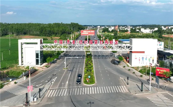 ▲中國(貴港)紡織服裝時尚新區(qū)入園大門