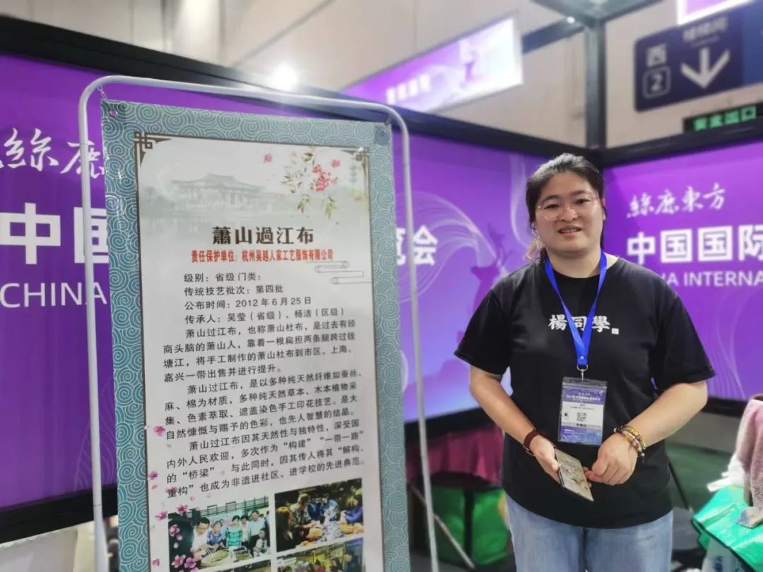 蕭山過江布對二十四節(jié)氣變化中的不同植物進(jìn)行植物印染。這位楊同學(xué)是蕭山過江布的區(qū)級傳承人,她將把進(jìn)行茶染和茶葉非遺進(jìn)行融合推廣。