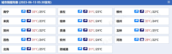 廣西各城市天氣預(yù)報。(來源:中國天氣網(wǎng))