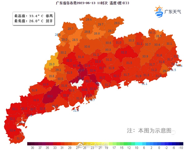 昨天11時(shí)廣東氣溫實(shí)況圖