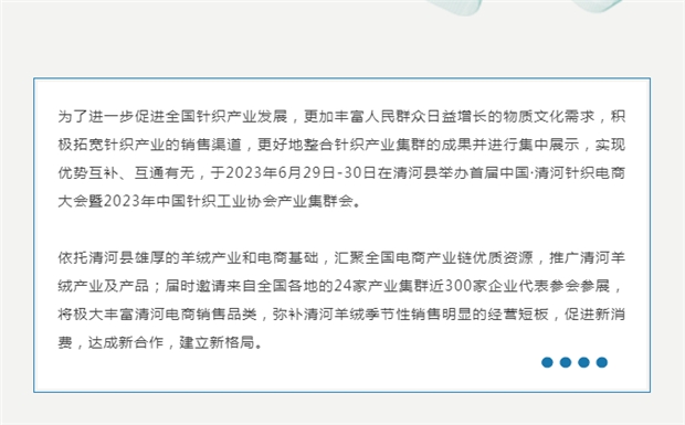 首屆中國·清河針織產(chǎn)業(yè)電商大會即將召開
