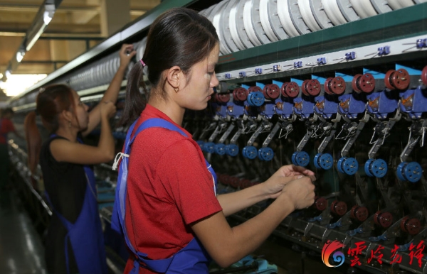 6月13日,記者在德宏傣族景頗族自治州隴川縣德宏正信實(shí)業(yè)股份有限公司寬敞明亮的廠房里看到,機(jī)器轟鳴,銀線穿梭,工人們正有條不紊地忙碌著。