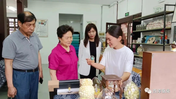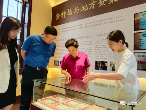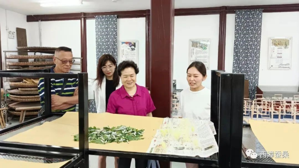 聽取介紹后,王慧芬理事長一行實地參觀了展覽展示館、育蠶室等。結(jié)合現(xiàn)場調(diào)研的結(jié)果,王慧芬理事長表示:多年前我曾在無錫絲綢公司工作,拜訪過西漳蠶種場,今天故地重游,看到這些老建筑非常感慨??傮w感覺惠山區(qū)堰橋街道對這一塊絲綢工業(yè)遺址的保護還是到位的,對蠶桑文創(chuàng)產(chǎn)品的開發(fā)也很有創(chuàng)意。但在傳統(tǒng)工業(yè)文化的再現(xiàn)和提升上還有空間。