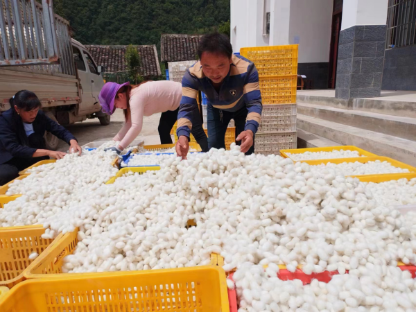 截止目前,第一批春繭已全部采收完畢,平均張產(chǎn)達(dá)到50公斤的歷史新高,蠶繭上繭率高、色澤潔白、解舒優(yōu)良,蠶繭價(jià)格也上漲至最高58元/公斤,蠶農(nóng)個(gè)個(gè)笑逐顏開,喜迎春繭豐收。