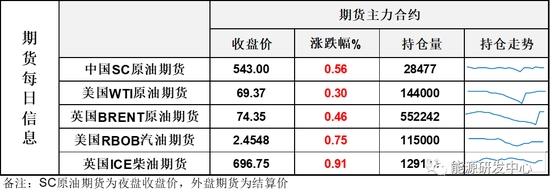 【1】WTI主力原油期貨收漲0.21美元,漲幅0.3%,報(bào)69.37美元/桶;布倫特主力原油期貨收漲0.34美元,漲幅0.46%,報(bào)74.35美元/桶;INE原油期貨收漲0.56%,報(bào)543元。