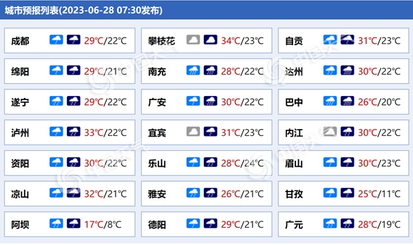 四川各城市預(yù)報(bào)。(來源:中國天氣網(wǎng))