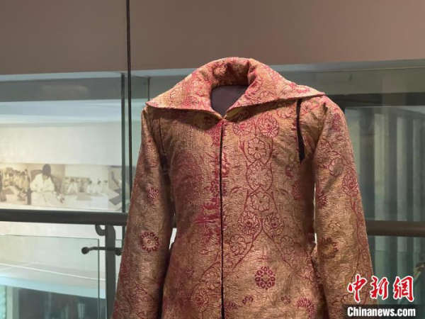 圖為現(xiàn)場(chǎng)展出的絲綢服飾