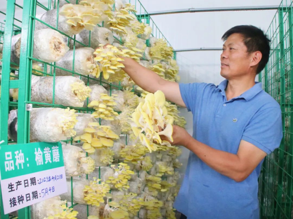 清晨7點(diǎn),工作人員便開始忙碌起來,他們將這一朵朵“傘”狀的菌菇小心翼翼地采摘下,整齊碼放進(jìn)筐里,不一會兒,幾大筐菌菇便采收完成。“從去年10月份開始修建菌菇栽培房,已經(jīng)育出了2萬棒菌包。今年6月,1萬棒菌包被投放進(jìn)栽培室,目前已有8000余棒菌包開始出菇,這些菌菇不僅長勢好,收益也不錯?!敝薪z天成桑枝菌生產(chǎn)研發(fā)中心負(fù)責(zé)人錢向陽手里拿著剛剛采摘下來的桑枝菌,滿臉洋溢著喜悅。