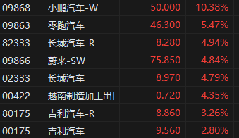 小鵬汽車漲超10%領(lǐng)漲汽車股,報50.9港元,創(chuàng)2022年9月以來新高,總市值881.1億港元。消息面上,小鵬G6昨日正式上市,并將于7月開啟交付。小鵬汽車董事長何小鵬表示,作為扶搖架構(gòu)下首款戰(zhàn)略車型,G6對于小鵬就好比iPhone 4之于蘋果,代表了小鵬汽車對于下一代智能電動車的思考。6月9日至28日,小鵬G6的訂單已突破3.5萬輛。