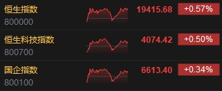 7月4日消息,昨日大幅上漲的港股再度收紅。截至收盤,恒指漲0.57%報19415.68點,恒生科技指數(shù)(4074.42, 20.07, 0.49%)漲0.5%,國企指數(shù)漲0.34%。盤面上,大型科技股齊漲,京東漲近3%,百度、網(wǎng)易漲近2%,美團、小米、騰訊均有漲幅,醫(yī)藥股強勢大漲,翰森制藥(13.82, 0.86, 6.64%)漲近7%領(lǐng)漲藍籌,榮昌生物(40.35, 6.20, 18.16%)漲超18%??凭W(wǎng)股多數(shù)上漲,金山軟件(32.05, 1.15, 3.72%)漲近4%,汽車經(jīng)銷商股、餐飲股、鋰電池股表現(xiàn)活躍;昨日大漲的汽車股集體回調(diào),內(nèi)銀股、家電股普遍走低。